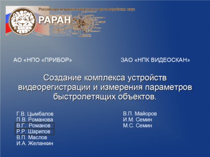 Участие в конференции РАРАН. В июне 2017 года на X конференции Волжского регионального центра РАРАН "Современные методы проектирования систем и отработки ракетно-артиллерийского вооружения" (Саров 2017 г.) был представлен совместный доклад АО "НПО Прибор" и ЗАО "НПК ВИДЕОСКАН".