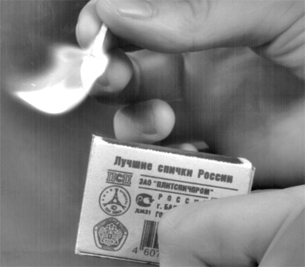 Зажигание зафиксированной спички 802.00 KB Частота съемки - 625 625 кадров/сек. Отдельные кадры этой видеозаписи с высоким разрешением: Зажигание спички о коробок (скрытая реклама производителя спичек:) 690.00 KB кадр, №356 37.49 KB |