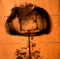 колка сырых дров 315.24 KB Частота сьемки - 1000 кадров/сек. Частота показа - 5 кадров/сек. Во время входа топора в полено видны выбросы воды из трещин. |