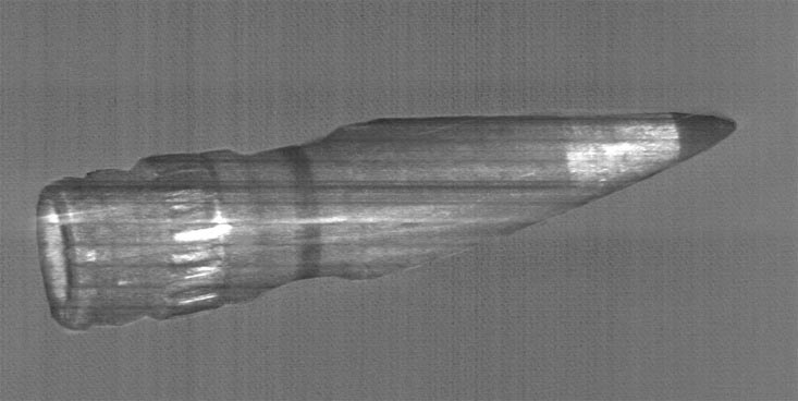 Съемка объекта камерой ВидеоЛОР. Объект двигается мимо регистратора на скорости около 900 метров в секунду. Диаметр объекта - около 33 мм . Длина - 160 мм.