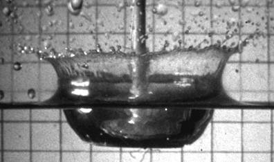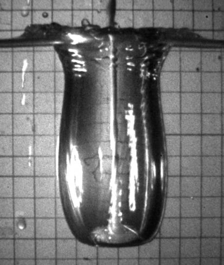 Снимки процесса проникания плоской круглой пластины в жидкость