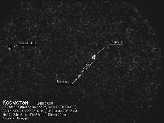 Вывод на орбиту трех космических аппаратов ГЛОНАСvoС, в четырех позициях. Видеоустройство: Цейсс 600