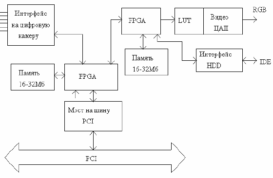 - запись и чтение последовательности телевизионных кадров на жесткий диск, подключенный к плате видеопроцессора, с непрерывной скоростью до 15 Мб/сек (25 кадров/сек), разрядность видеоданных - 8 бит на пиксель;