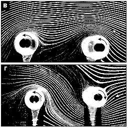 - обтекание вращающихся цилиндров (фиг. 1в,г);
