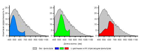 черно-белых и цветных (с учетом ИК отрезающего фильтра) матриц, применяемых