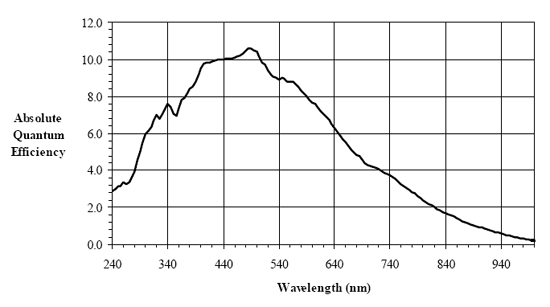 Абсолютная спектральная чувствиельность матрицы KAI-2020 без защитного стекла и без микролинз (ультрафиолет).